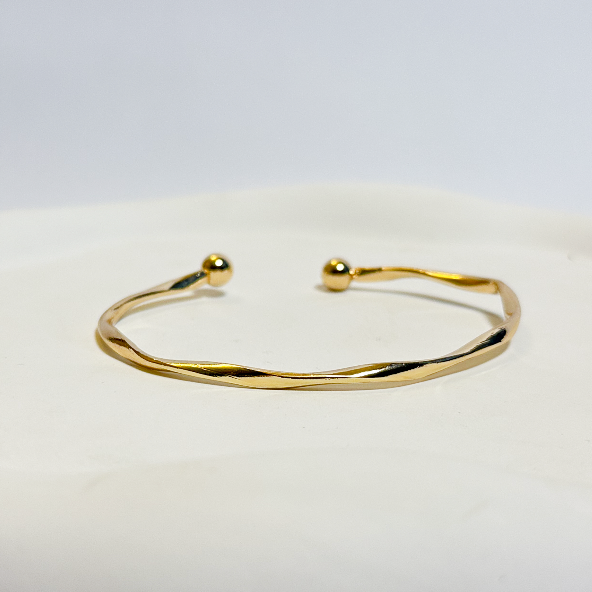 Effortlessly chic, this twisted open cuff brings a minimalist glow to your everyday stack. Perfect alone or layered for extra shine.